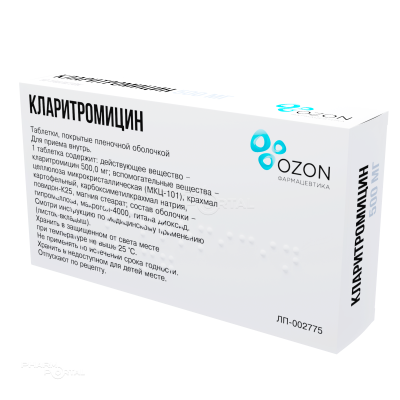 КЛАРИТРОМИЦИН 500мг N10 табл п.п.о. ОЗОН в Барнауле