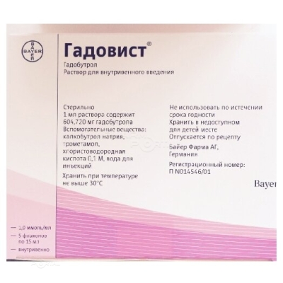 Сообщалось о случаях развития нефрогенного системного фиброза в связи с введением гадолинийсодержащих контрастных средств пациентам с острой или хронической почечной недостаточностью тяжелой степени (скорость клубочковой фильтрации <30 мл/мин/1.73 м2); пациентам с острой почечной недостаточностью любой степени тяжести, вызванной печеночно-почечным синдромом, или в период до и после трансплантации печени.
