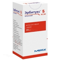 - мКРР с экспрессией EGFR и "диким" типом генов RAS в качестве монотерапии в случае неэффективности предшествующей химиотерапии на основе иринотекана и оксалиплатина, а также при непереносимости иринотекана;