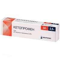 Метаболизм и выведение. Кетопрофен подвергается интенсивному метаболизму при действии микросомальных ферментов печени, период полувыведения составляет менее 2 ч. Кетопрофен связывается с глюкуроновой кислотой и выводится из организма в виде глюкуронида. Активных метаболитов кетопрофена нет. До 80 % кетопрофена выводится почками в течение 24 ч, в основном в форме глюкуронида кетопрофена. При применении препарата в дозировке 100 мг и более выведение почками может быть затруднено.