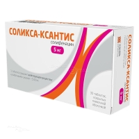 Распределение: объем распределения солифенацина после внутривенного введения составляет примерно 600 л. Солифенацин в значительной степени (около 98%) связывается с белками плазмы крови, преимущественно с α1-кислым гликопротеином.