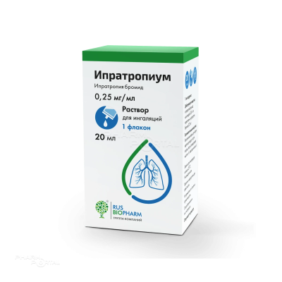При ингаляционном применении практически не оказывает резорбтивного действия. Бронходилатация, возникающая после ингаляции ипратропия бромида, является, главным образом, следствием его местного и специфичного воздействия на легкие, а не результатом его системного влияния. После применения ипратропия бромида у пациентов с бронхоспазмом, обусловленным ХОБЛ, наблюдается существенное улучшение функций легких в течение 15 мин, достигающее максимума через 1-2 ч и сохраняющееся до 4-6 ч.