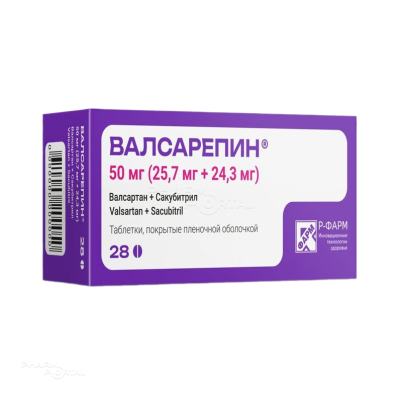 Препарат ВАЛСАРЕПИН® представляет собой комбинацию 2 действующих веществ - валсартана и сакубитрила. Валсартан препятствует сокращению стенок кровеносных сосудов, сакубитрил также препятствует данному процессу, а также борется с задержкой натрия (соли) в организме, приводящей к отекам.