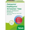 Энтакапон быстро всасывается из ЖКТ. Cmax при однократном приеме внутрь достигается через 1 ч. Индивидуальная биодоступность составляет 35% (при однократном приеме внутрь 200 мг). Связывается с белками плазмы крови на 98%, в основном с альбумином; в терапевтических концентрациях не вытесняет из связи с белками другие лекарственные средства с высокой степенью комплексообразования (в т.ч. варфарин, кислота салициловая, фенилбутазон, диазепам). Vd - 0.27 л/кг. Почти полностью метаболизируется. Подвергается эффекту "первого прохождения" через печень, небольшое количество энтакапона, являющегося (Е)-изомером, превращается в (Z)-изомер (составляет приблизительно 5% от общего количества энтакапона в плазме крови). Основной путь метаболизма энтакапона и его активного метаболита - конъюгирование с глюкуроновой кислотой. Выводится с мочой на 10-20% и с калом и желчью - на 80-90%. Общий клиренс составляет около 0.7 л/кг/ч. T1/2 составляет 0.4-0.7 ч. Вследствие короткого T1/2 при повторном назначении не происходит истинного накопления леводопы или энтакапона. Метаболизм энтакапона замедлен у больных с легкими и умеренными нарушениями функции печени (классы А и Б по шкале Чайлд-Пью), что приводит к увеличению концентрации энтакапона в плазме крови как в фазе поглощения, так и в фазе выведения.