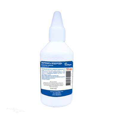 100 мл раствора содержат: перекись водорода 3 % – 100 мл [субстанция-раствор, содержащая: действующее вещество: водорода пероксид – 3 г; вспомогательные вещества: натрия бензоат – 0,05 г, вода очищенная – до 100 мл].