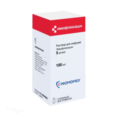 Фармакокинетика левофлоксацина является линейной в диапазоне доз от 50 до 1000 мг. После в/в 60-минутной инфузии левофлоксацина в дозе 500 мг здоровым добровольцам Cmax в плазме крови составляла в среднем 6.2 мкг/мл. При введении 500 мг левофлоксацина 1 или 2 раза/сут, Css в плазме крови достигается в течение 48 ч. Связывание с белками плазмы крови составляет 30-40%. Vd левофлоксацина составляет в среднем 100 л после однократного и многократного в/в введения 500 мг, что указывает на хорошее проникновение левофлоксацина в органы и ткани организма. Левофлоксацин хорошо проникает в слизистую оболочку бронхов, жидкость эпителиальной выстилки, альвеолярные макрофаги, легочную ткань, альвеолярную жидкость, кортикальную и губчатую костную ткань, в ткань предстательной железы. Левофлоксацин плохо проникает в спинномозговую жидкость. В моче создаются высокие концентрации левофлоксацина, в несколько раз превышающие концентрации левофлоксацина в плазме крови.