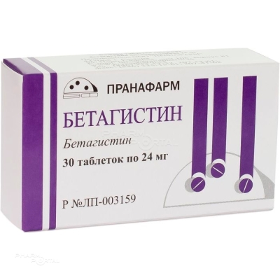 действующее вещество: бетагистина дигидрохлорид 24 мг;