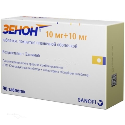 ХС поступает в плазму крови в результате всасывания в кишечнике и эндогенного синтеза. Препарат Зенон® содержит эзетимиб и розувастатин, два гиполипидемических компонента, дополняющих друг друга по механизму действия. Комбинация розувастатин + эзетимиб снижает повышенную концентрацию общего холестерина (ОХС) в плазме крови, холестерина липопротеинов низкой плотности (ХС-ЛПНП), аполипопротеина В (АпоВ), триглицеридов (ТГ) и холестерина липопротеинов невысокой плотности (ХС-не-ЛПВП, рассчитывается как разность между концентрацией ОХС и концентрацией ХС-ЛПВП) и повышает концентрацию в плазме крови холестерина липопротеинов высокой плотности (ХС-ЛПВП) путем двойного ингибирования, как абсорбции, так и синтеза ХС.