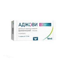 Немедленно обратитесь к своему лечащему врачу, если у Вас возникли какие-либо признаки серьезной аллергической реакции, например проблемы с дыханием, отек губ и языка или выраженная сыпь после инъекции препарата Аджови. Эти реакции могут возникнуть в течение 24 часов после использования Аджови, но иногда могут быть отсрочены. В случае возникновения серьезных реакций гиперчувствительности необходимо начать соответствующую терапию и прекратить лечение фреманезумабом.