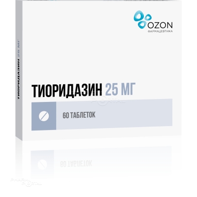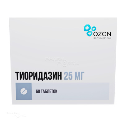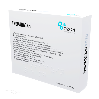 Действующее вещество: тиоридазина гидрохлорид – 25,00 мг.