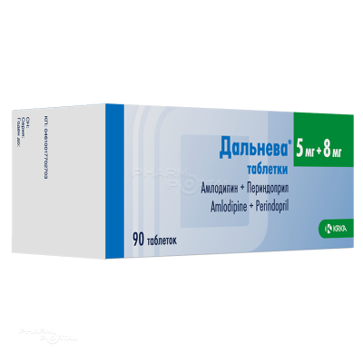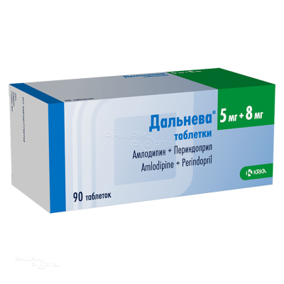 Величина абсорбции амлодипина и периндоприла при применении комбинированного лекарственного препарата Дальнева® существенно не отличается от таковой при применении их в качестве монопрепаратов.