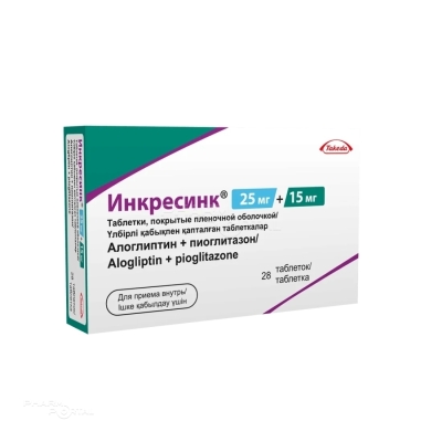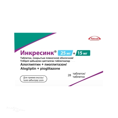 Препарат Инкресинк® представляет собой комбинацию двух гипогликемических средств с взаимодополняющими и разными механизмами действия, предназначенную для улучшения контроля гликемии у пациентов с сахарным диабетом 2 типа (СД2): алоглиптина, ингибитора фермента дипептидилпептидазы-4 (ДПП-4) и пиоглитазона, представителя класса тиазолидиндионов. Результаты исследований на животных при лечении сахарного диабета указывали на то, что комбинированное применение алоглиптина и пиоглитазона продуцировало аддитивное и синергическое улучшение гликемического контроля, увеличение содержания панкреатического инсулина и нормализованное распределение β-клеток поджелудочной железы.