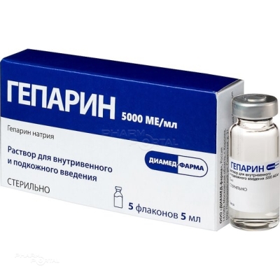 Наибольшее значение имеет способность гепарина натрия в комплексе с антитромбином III ингибировать факторы свертывания IIа (тромбин) и Ха. Отношение активности гепарина натрия в отношении фактора Ха к его активности в отношении фактора IIа составляет 0,9-1,1.