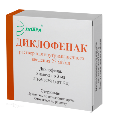 ДИКЛОФЕНАК 25мг/мл x 3мл N5 р-р в/м введ ЭЛЛАРА в Ростове-на-Дону