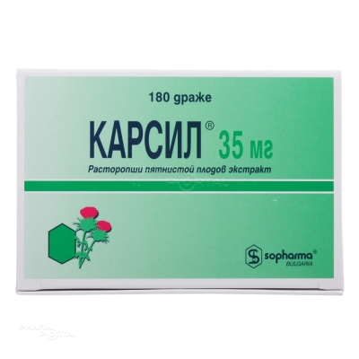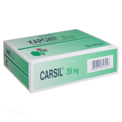 Карсил® принадлежит к группе гепатопротекторных лекарственных средств. Содержит сухой экстракт плодов расторопши пятнистой (эквивалент силимарина), который является смесью 4 изомеров флаволигнанов: силибинина, изосилибинина, силидианина и силикристина. Механизм действия препарата все еще недостаточно изучен. Установлено, что гепатопротекторное действие силимарина обусловлено конкурентным взаимодействием с токсинами на соответствующие рецепторы в мембране гепатоцитов, проявляя, таким образом, мембраностабилизирующее действие. Силимарин оказывает метаболические и клеточно-регулирующие эффекты, регулируя проницаемость клеточной мембраны, подавляя 5-липоксигеназный путь, в особенности лейкотриена В4 (LТВ4), а также связываясь со свободными реактивными кислородными радикалами. Стимулирует синтез протеинов (структурных и функциональных) и фосфолипидов в пораженных гепатоцитах, ускоряя регенеративные процессы. Действие флавоноидов, к которым принадлежит силимарин, также обусловлено их антиоксидантными и улучшающими микроциркуляцию эффектами. Клинически эти эффекты выражаются в улучшении субъективной и объективной симптоматики и в нормализации показателей функционального состояния печени (трансаминазы, гамма-глобулин, билирубин). Это ведет к улучшению общего состояния, уменьшению жалоб, связанных с пищеварением, а у пациентов с пониженным усвоением пищи вследствие заболевания печени, ведет к повышению аппетита и увеличению массы тела.