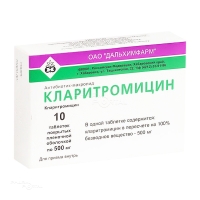 КЛАРИТРОМИЦИН 500мг N10 табл п.п.о. ДАЛЬХИМФАРМ