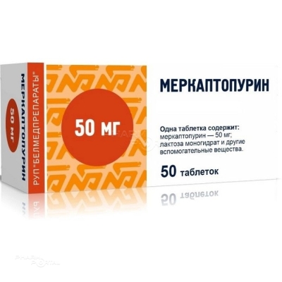 T1/2 составляет приблизительно 90-130 мин. T1/2 трехфазный: I фаза - 47 мин у взрослых и 21 мин у детей, II и III фазы - 2.5 и 10 ч, довольно быстрое разрушение связано с включением его в пути метаболизма, свойственные всем пуринам. Фармакологический эффект в большей степени обусловлен метаболитами, выведение которых происходит через почки путем канальцевой секреции и гломерулярной фильтрации. В моче метаболиты обнаруживаются уже через 2 ч после приема, 46% меркаптопурина выводится за первые сутки. Метаболиты продолжают определяться в моче на протяжении нескольких недель после прекращения лечения; метаболиты фармакологически активны и имеют больший T1/2, чем сам меркаптопурин.