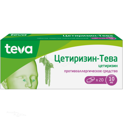 ЦЕТИРИЗИН-ТЕВА 10мг N20 табл п.п.о. ТЕВА ФАРМА в Воронеже