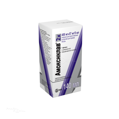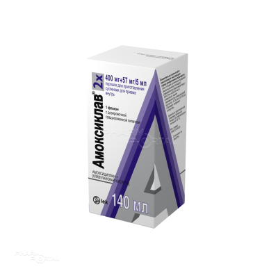 Порошок для приготовления суспензии для приема внутрь, 125 мг + 31,25 мг/5 мл, 250 мг + 62,5 мг/5мл, 400 мг + 57 мг/5 мл.